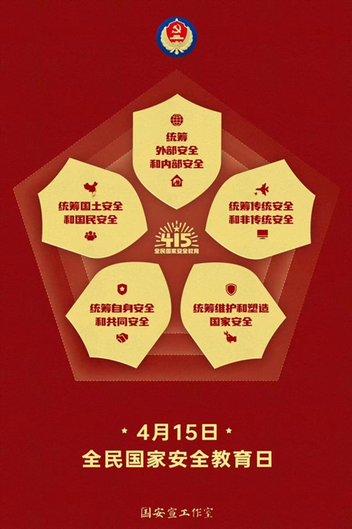 2023年4月15日是第八個全民國家安全教育日。活動主題為:“貫徹總體國家安全觀,增強全民國家安全意識和素養,夯實以新安全格局保障新發展格局的社會基礎。”