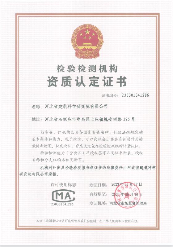 河北省建筑科學研究院有限公司CMA證書